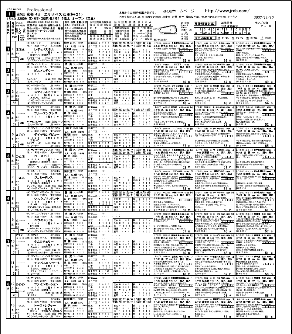 JRDB会員の「こんな新聞が欲しい」といった要望からできた新聞で、各種データが詰め込まれた新聞です。各馬のあらゆる指数が掲載されていて、データ重視派にはおすすめの新聞です。 なおご覧になるためには、Adobe Acrobat ReaderがPCに組み込まれている必要があります。