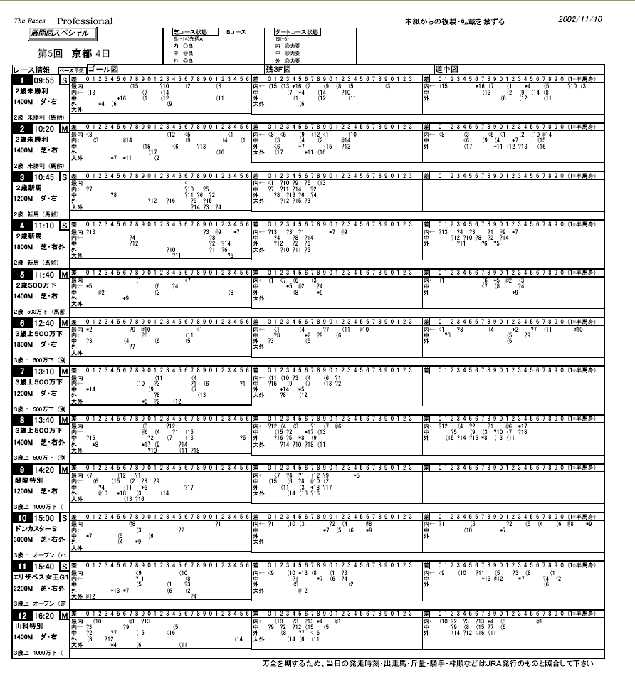 JRDB会員の「こんな新聞が欲しい」といった要望からできた新聞で、各PDF新聞に掲載の「展開」だけを抜き出した新聞です。全場全レースの「展開」が掲載されていて、展開ファンにはおすすめの新聞です。 なおご覧になるためには、Adobe Acrobat ReaderがPCに組み込まれている必要があります。